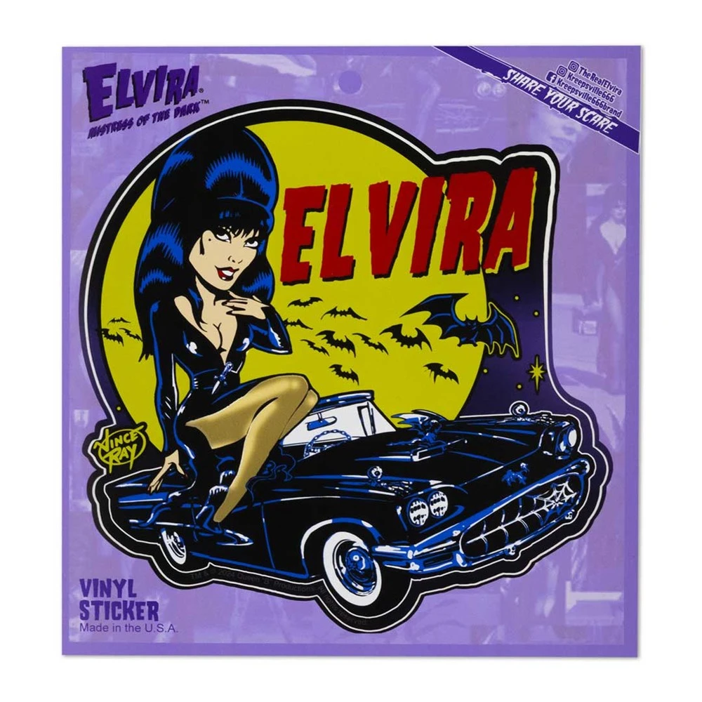 Add dark style to your macabre mobile or crypt with the officially licensed Elvira Macabre Mobile Cartoon Sticker. This sexy sticker is made with a durable curse-resistant and water-resistant vinyl perfect for indoor or outdoor use. The acrylic-based permanent adhesive will easily stick to any surface: crypt, car, coffin, water bottle, skateboard, helmet, laptop, tablet, fridge, headphones, phone case, notebook, etc. Art work by Vince Ray. Size approx. 4.9″ (12.5cm) x 5″ (12.9cm). Printed in the USA.