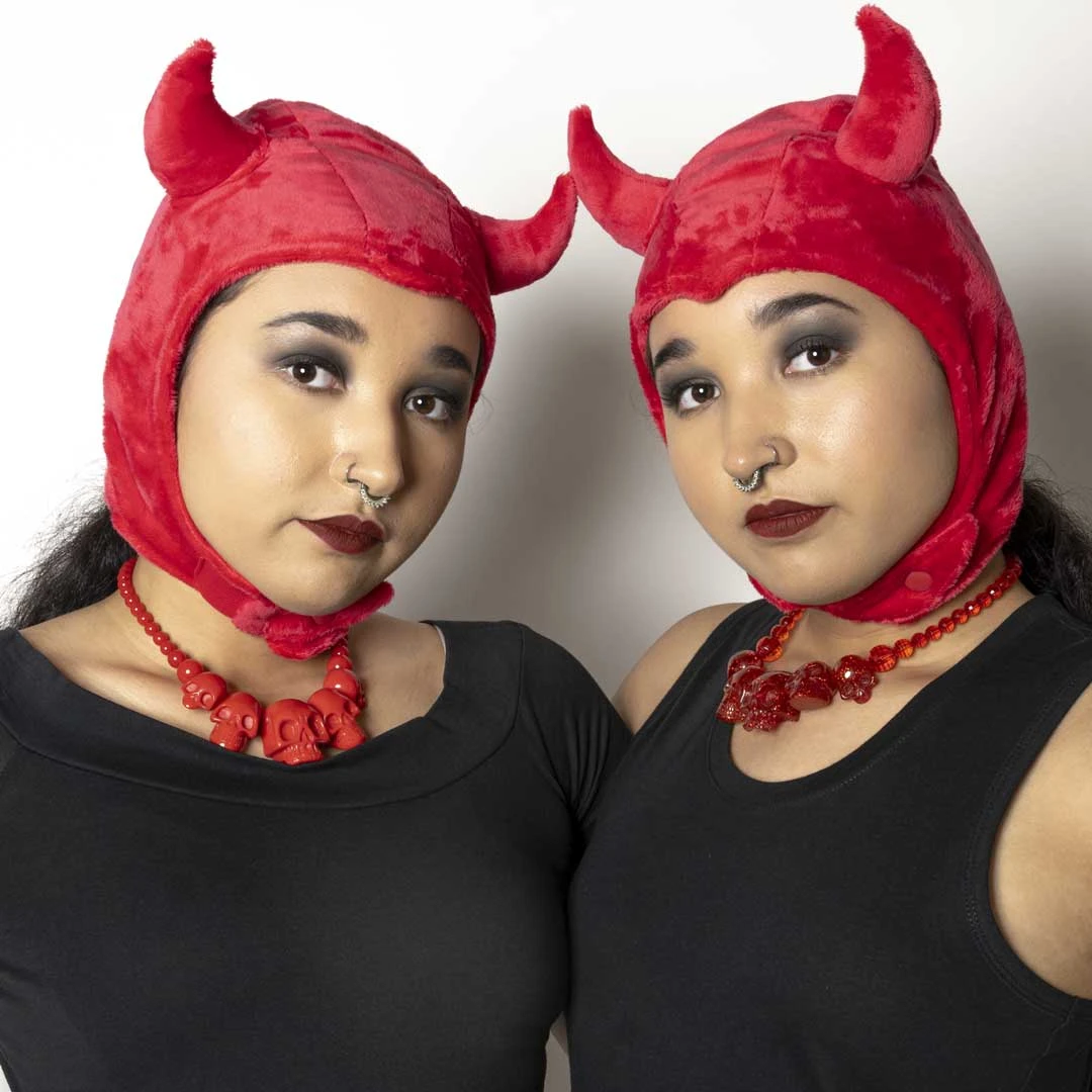 Kreepsville 666 Skull Collection necklace in red glitter, Â clear resin skull beads mixed with red glitter though out with neck extender and coffin charm, size of large skull approx 1.75″ high